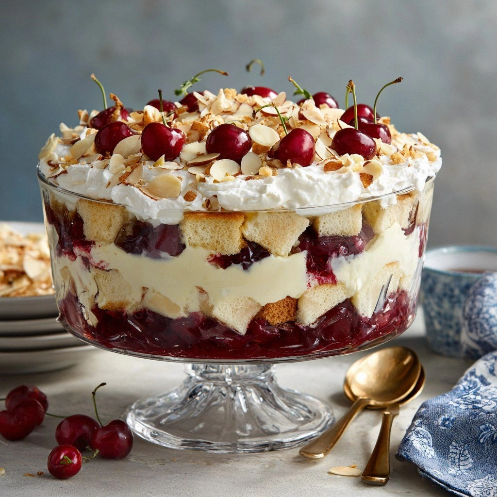 I was halfway through a late‑night baking marathon when the kitchen turned into a chaotic symphony of splatters and aromas. A rogue cherry jam had slipped off the counter, splattering across the countertop like a crimson waterfall, and my pre‑made angel food cake lay in a heap of despair. The moment I tasted the sticky mess, I felt the electric jolt of inspiration: what if that mess could be transformed into a layered masterpiece that balances airy cake, sweet cherries, and nutty crunch? I dared myself to turn this disaster into a triumph, and the result is a trifle that sings with every bite.